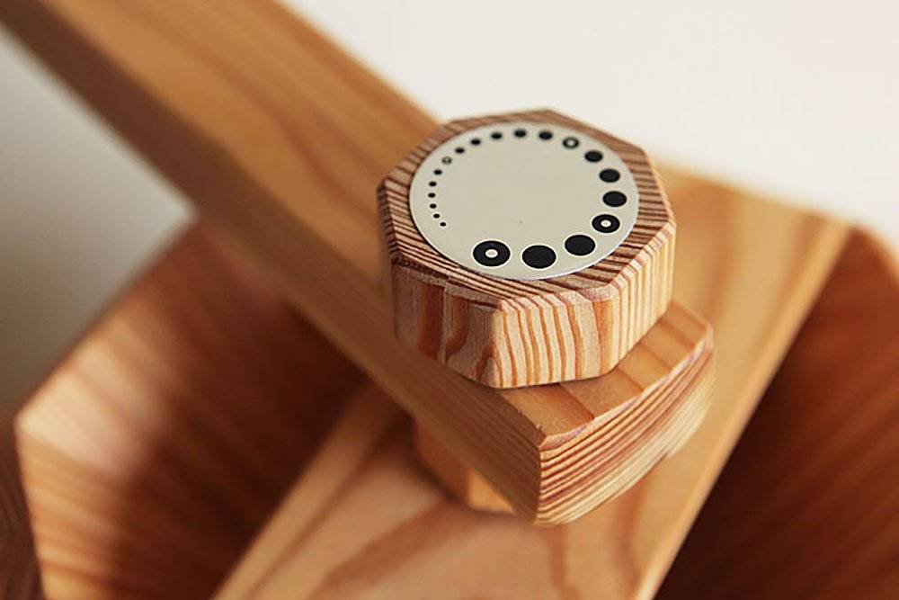 - Obrotowa korba z drewnianym uchwytem, o promieniu 12 cm