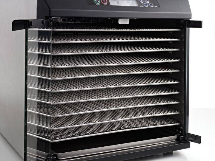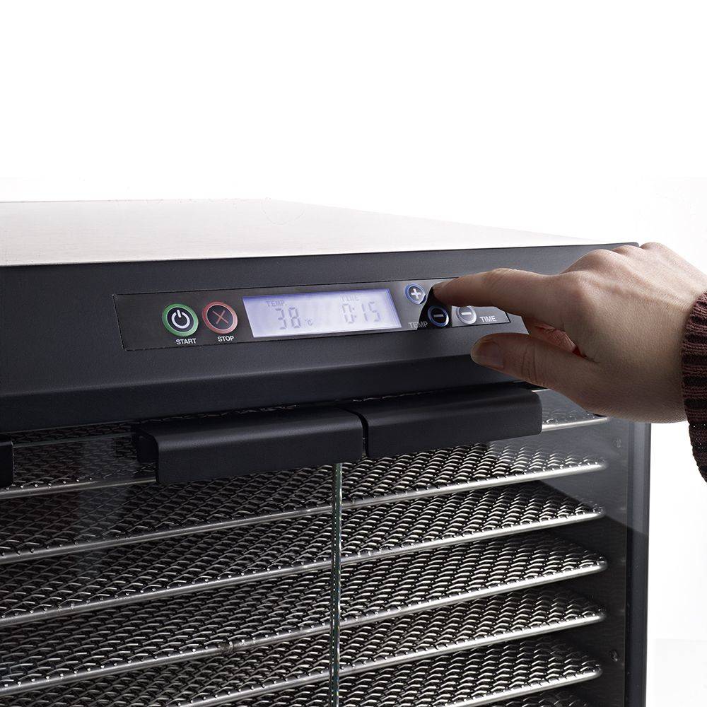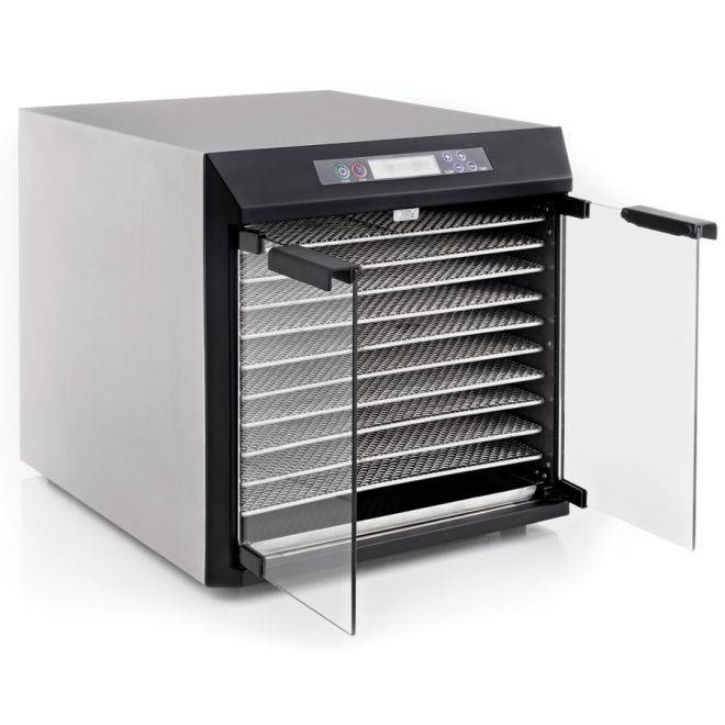 Komercyjny suszarka ze stali nierdzewnej z tacami ze stali nierdzewnej, o powierzchni suszenia 1,45 m² (minutnik z możliwością zaprogramowania i 10 tac)